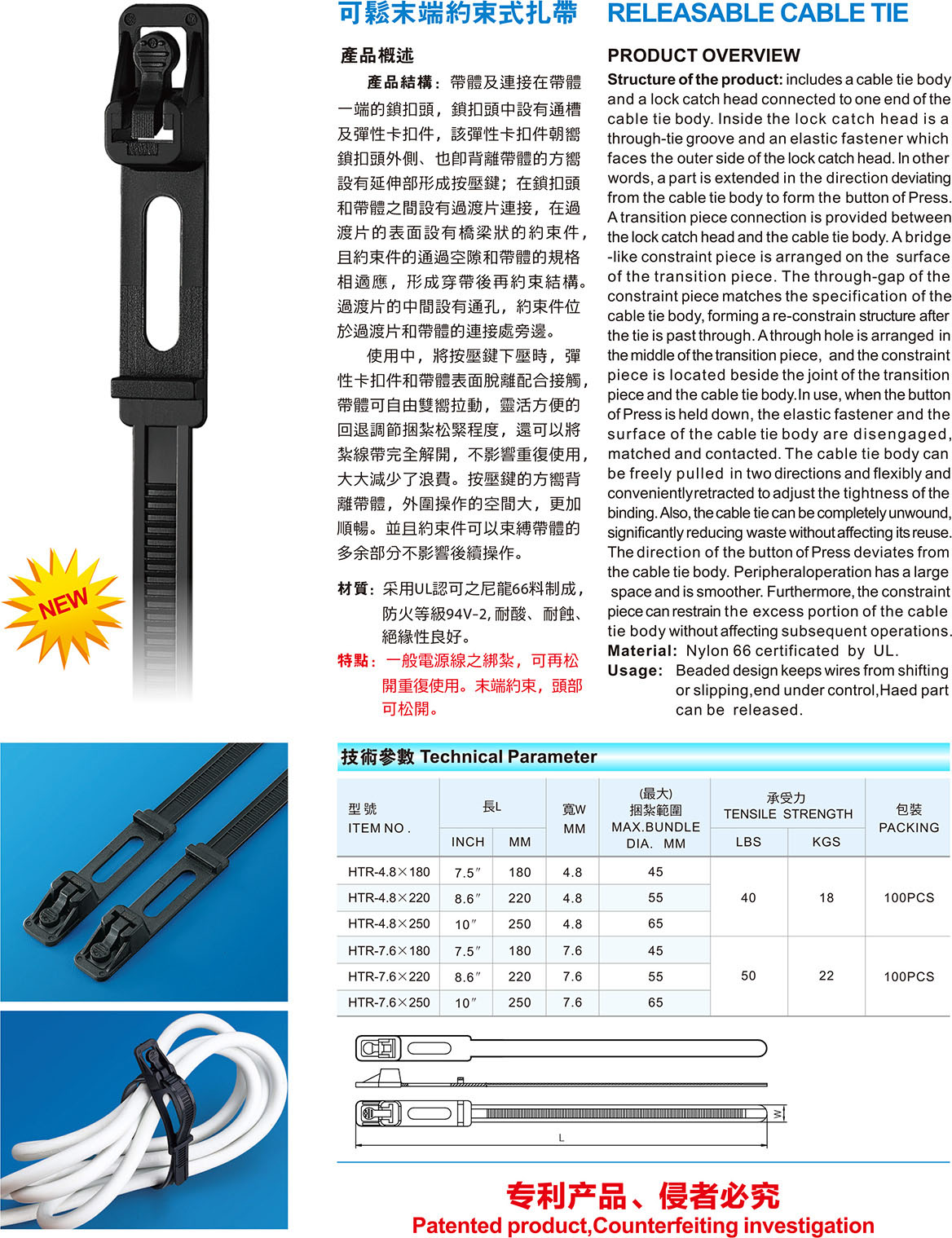 Products NYLON CABLE TIES SERIES RELEASABLE CABLE TIE