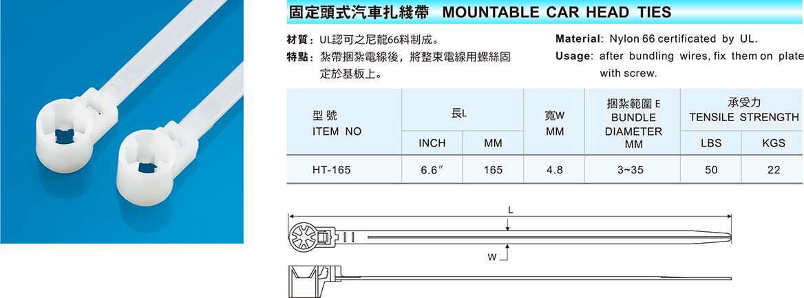 AK平台 尼龙扎带系列 固定头式汽车扎线带